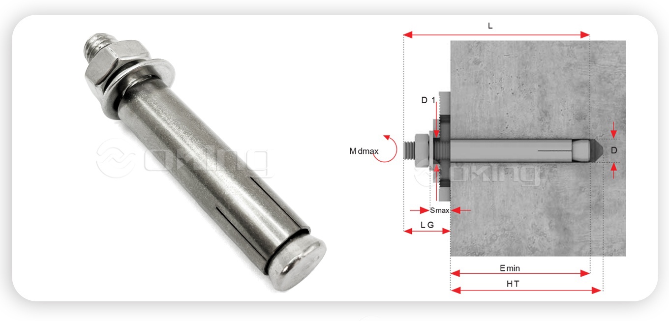 1. Sofortige Verankerung: Einschlagen, Mutter festziehen und vollständige Ausdehnung der Hülse erreichen;