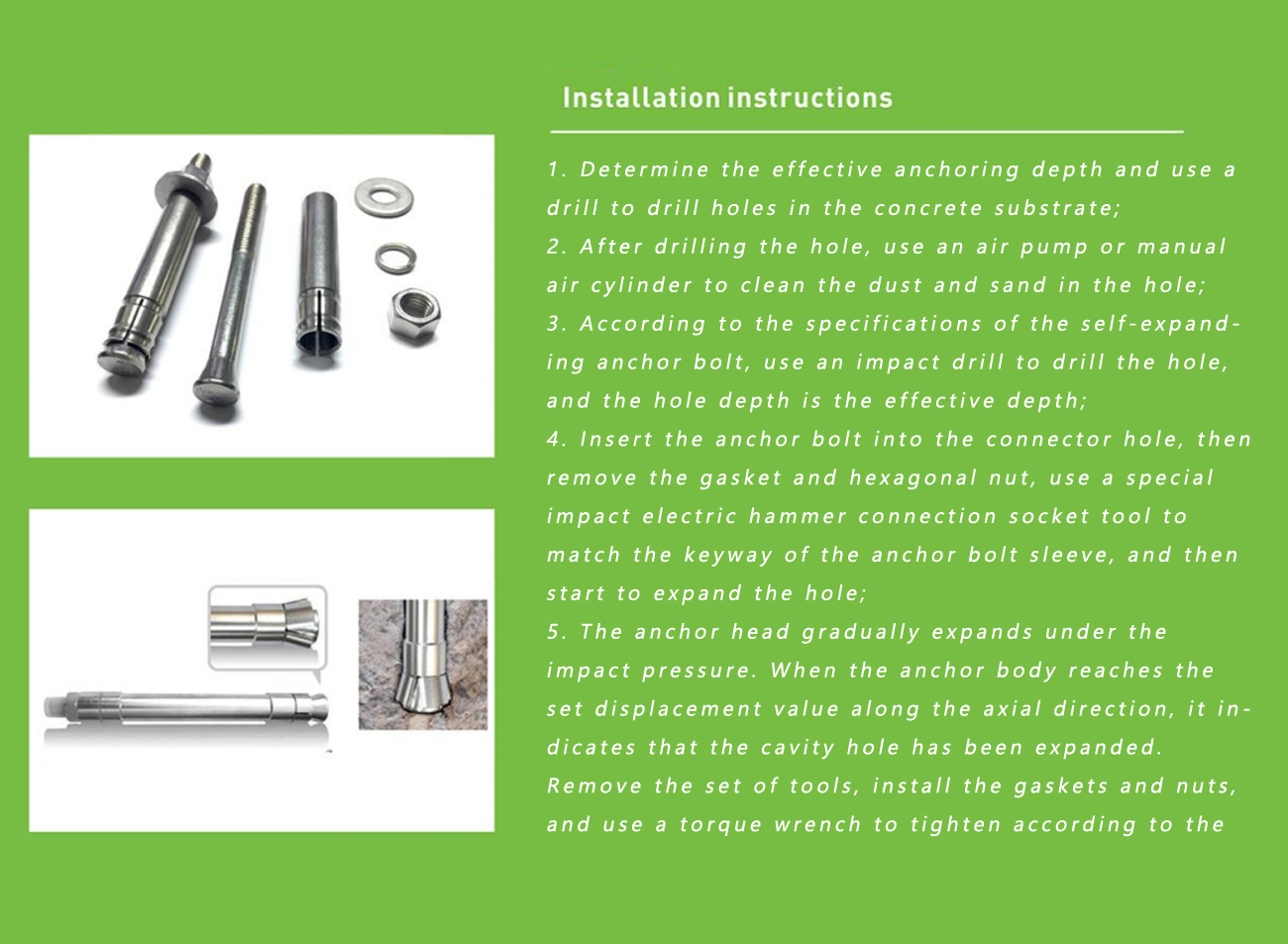Es gibt viele Arten von Expansionsschrauben, um Anker an verschiedenen Wänden zu reparieren. Expansionsschrauben werden alle getestet, um die Kriterien für Ausziehkraft und Scherkraft zu erfüllen.